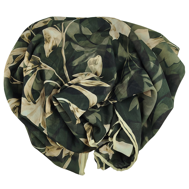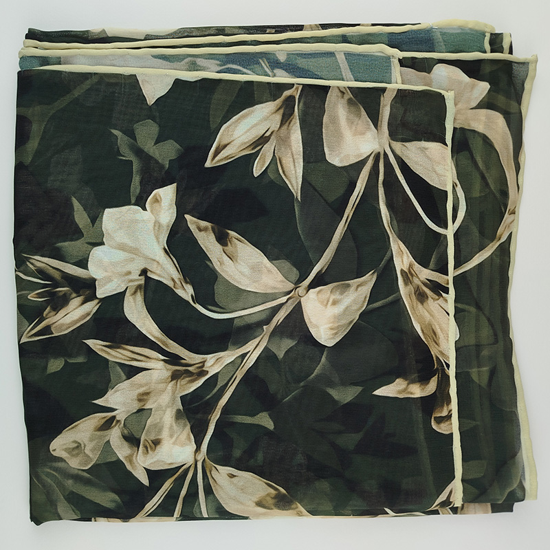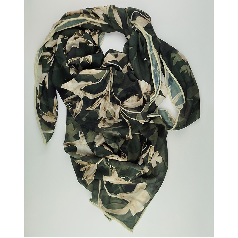 روسری حریر سیمارو زمینه سبز گل درشت قواره 105 و 130